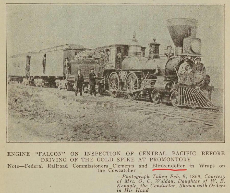 Another misspelling suggests otherwise. After googling BLINKENDOFFER, I find this 1869 photo + caption in Thompson’s Short History of the American Railways, 1925: