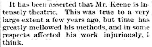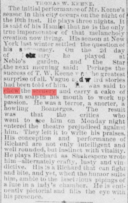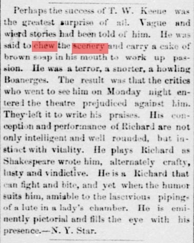 Contrast Thomas W. Keene, the greatest (and probably the first) of the Late 19th Century Scene Chewers….