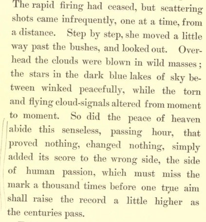 But anyways, admitting that this still might be her worst book, a broader argument could be made for Foote’s own personal significance. Coeur D’Alene (1894) was not her style. In the same way she rejected the book a year after it was published, she rejected all such dramatizations, or summarizations, of “The West”. Not surprisingly though, those were two things she tended to do. If her Coeur D’Alene (1894) is her great dramatization of the essential absurdity of “The West”, then her three-page intro to The Last Assembly Ball (1888), is her great summarization. She advises here an atomized approach — an “episodic manner”: