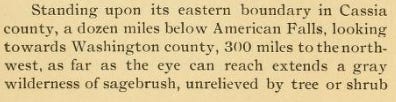 NOTE (A): The hearts of Idaho’s mountains, trembling at miner’s stroke, yield up the precious metals; her valley’s quiver with lisping grasses, and her gardens glow with flowers and fruit.