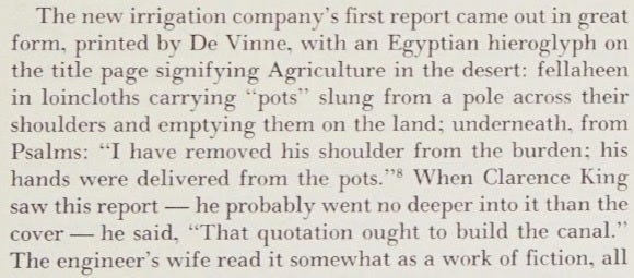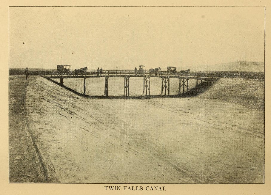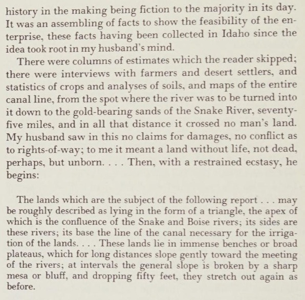 NOTE (B3): ….we might grow discontented…. It had taken 25 years... The New York Canal Idea went back to 1884, to The Idaho Mining and Irrigation Company Report, published in New York City, conceived and written by Arthur Foote, husband of Mary Hallock Foote.