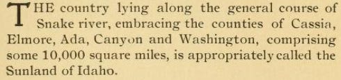 See The Sunland of Idaho, published by the Bureau of Immigration, Labor and Statistics, 1905: