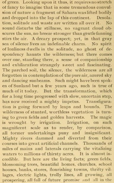 Special emphasis on the “trembling” and the “quivering” and the “glowing”... This is a transitional period for the “Gem of the Mountains”, from Idaho the Territory into Idaho the State — from panned-out Gold in the Mountain into ungrown Fruit in the Valley — this via the “transfiguration of the desert”, via Irrigation…
